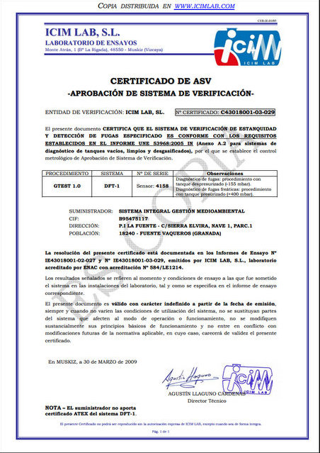 Realizamos a sus depósitos las Pruebas Periódicas de Estanqueidad exigidas en el Reglamento de Instalaciones Petrolíferas con los sistemas Detecta y Gtest, Autorizado por todas las delegaciones de industria del territorio nacional y evaluado favorablemente por laboratorio acreditado de acuerdo con el R.D. 1523/1999.
